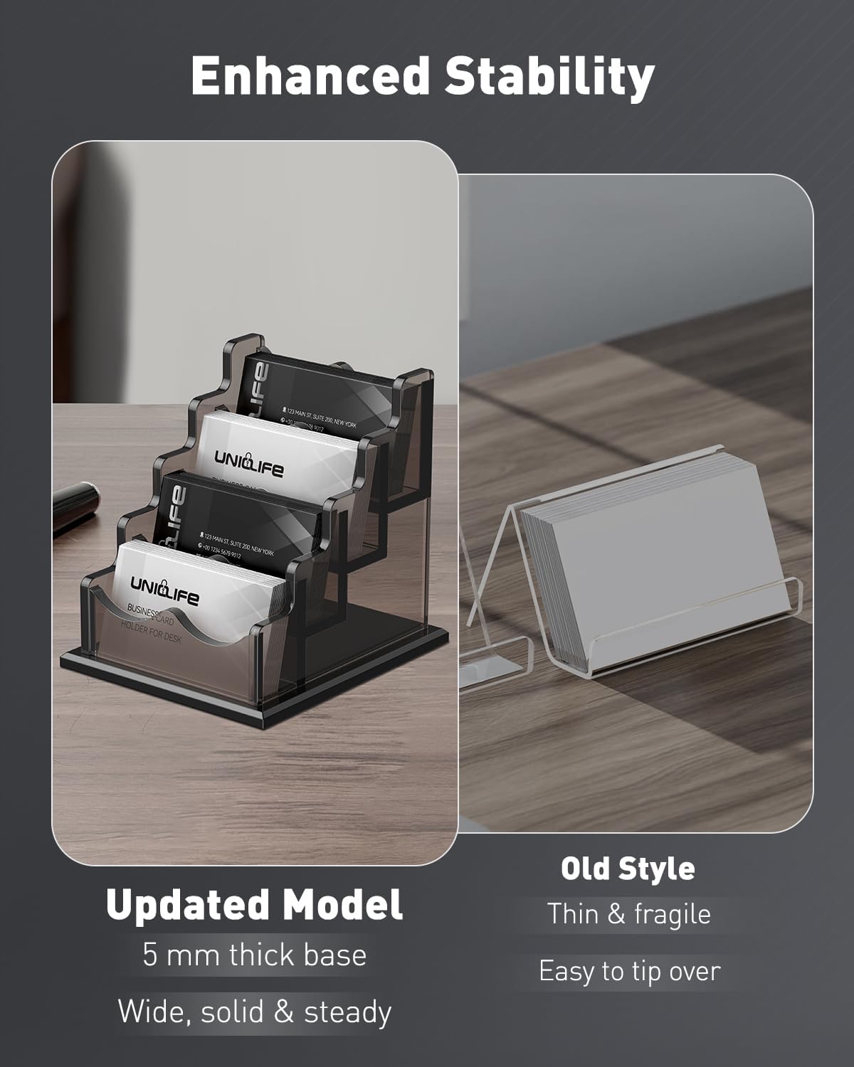 - Enhanced Stability: Featuring a wide, solid base, the business card organizer ensures maximum stability on any flat desktop. Its minimalist, black finish effectively adds a professional touch while keeping your cards perfectly positioned and displayed