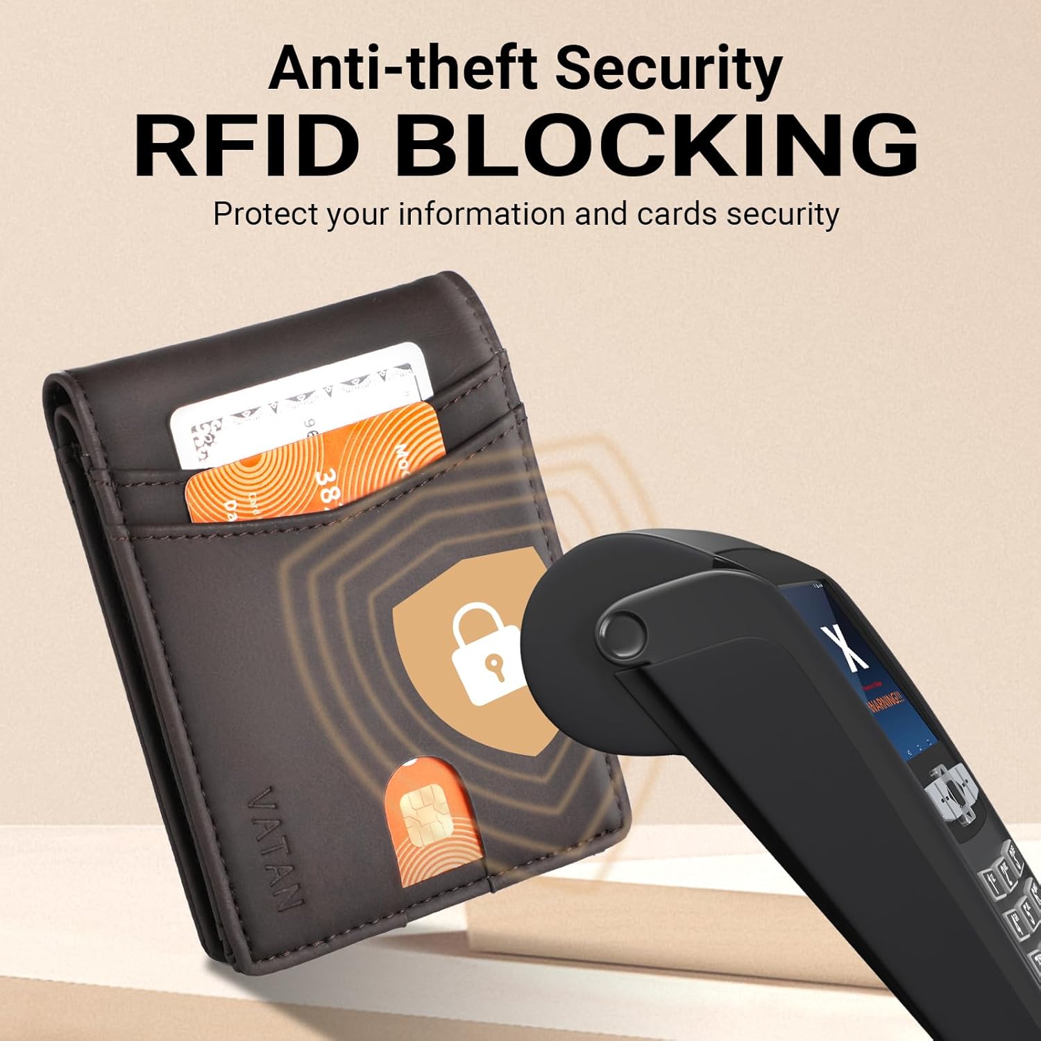 VATAN Wallet for Men, Mens Minimalist Wallet Credit Card Holder, Slim Leather Rfid 2 ID Window Large Capacity With Gift Box (Crazy Horse Deep Brown)