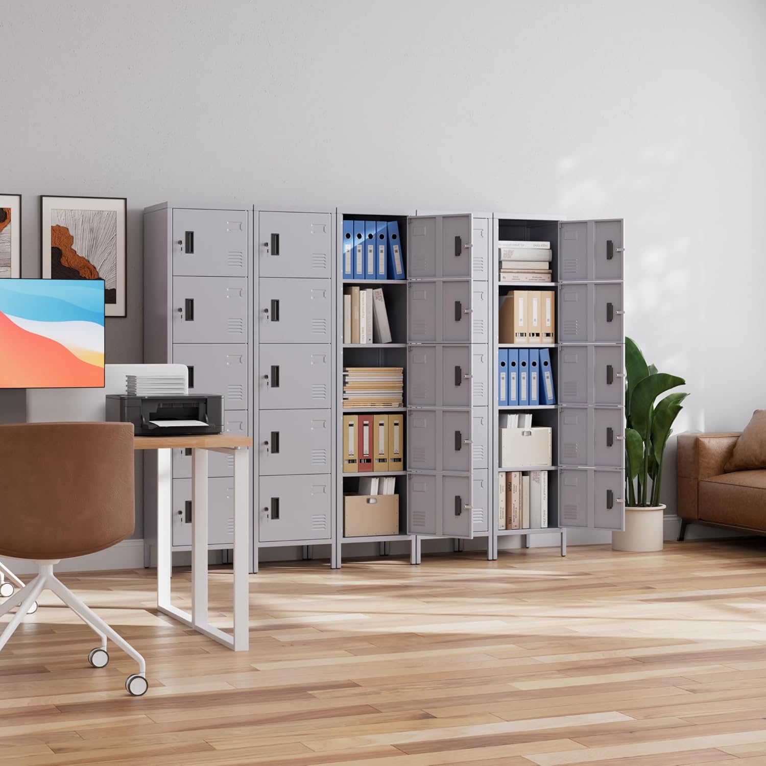 - 【Unique Design】Metal locker doors are equipped with ventilation holes,which help you keep items dry and ventilated,eliminating odor.business card slot can be labeled with each person's name for easy use.metal locker has legs, providing ample space underneath for easy cleaning.