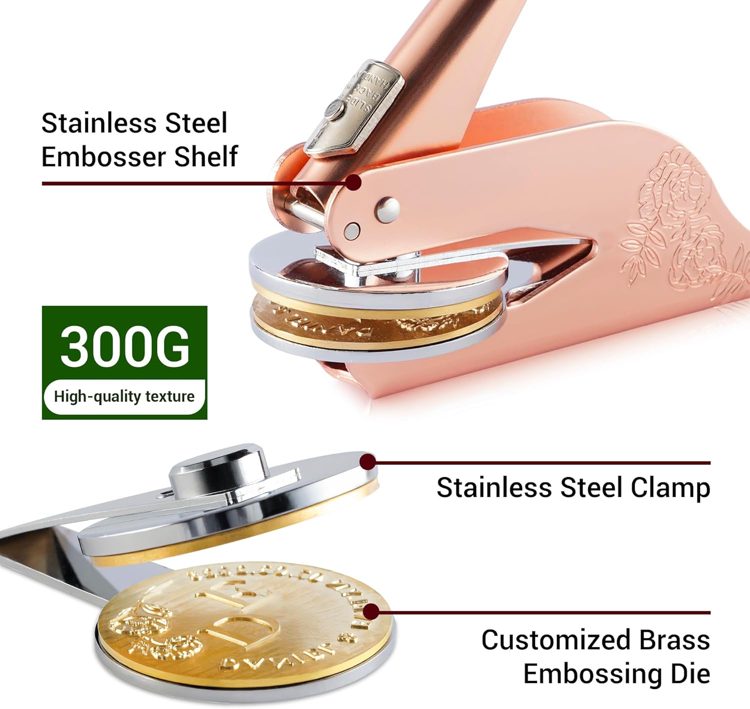 - 📏Premium Durability: Built with high-quality materials, this custom stamp boasts a sturdy structure that ensures long-lasting durability. The brass plates are strong and resistant to deformation, ensuring that your embossed patterns remain clear and beautiful over time. A perfect tool for those seeking both quality and longevity in their embossing projects.