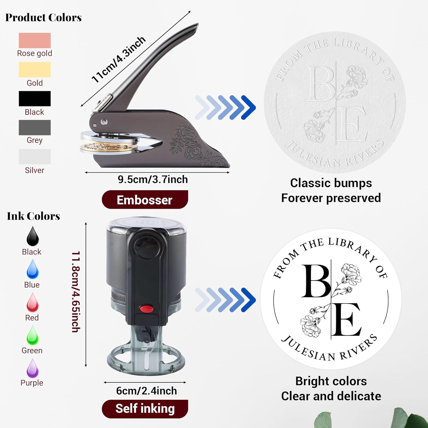 - 🔒Elegant Design: Available in a range of stylish colors including rose gold, silver, black, and gold, our personalized book embosser combines form and function. With its compact size (approximately 10 cm in length), it resembles a miniature stapler, making it not only portable but also a chic addition to your workspace or home decor. It's perfect for showing off your taste wherever you go.