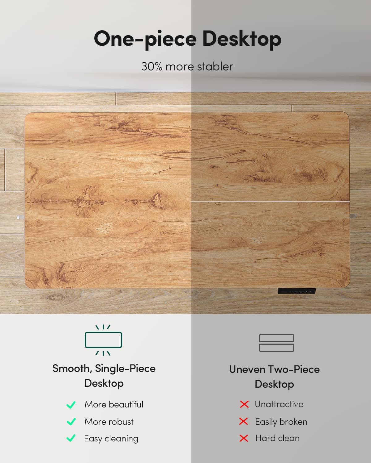 - Seamless One-Piece Design: Fezibo adjustable standing desk features a smooth, one-piece desk surface without visible seams. Unlike other models with joined panels, this seamless design offers 30% enhanced stability to provide a solid foundation for your equipment.