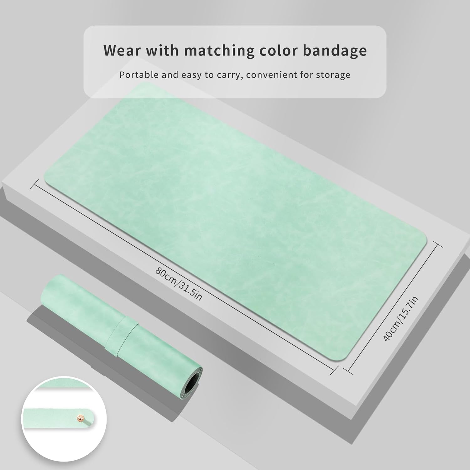 Crazy Horse Leather Desk Mat Large Mouse Pad Laptop Computer Desk Pad Protector Non-Slip Waterproof Table Blotter Desktop Writing Pad for Office and Home (Light Green, 80x40cm)