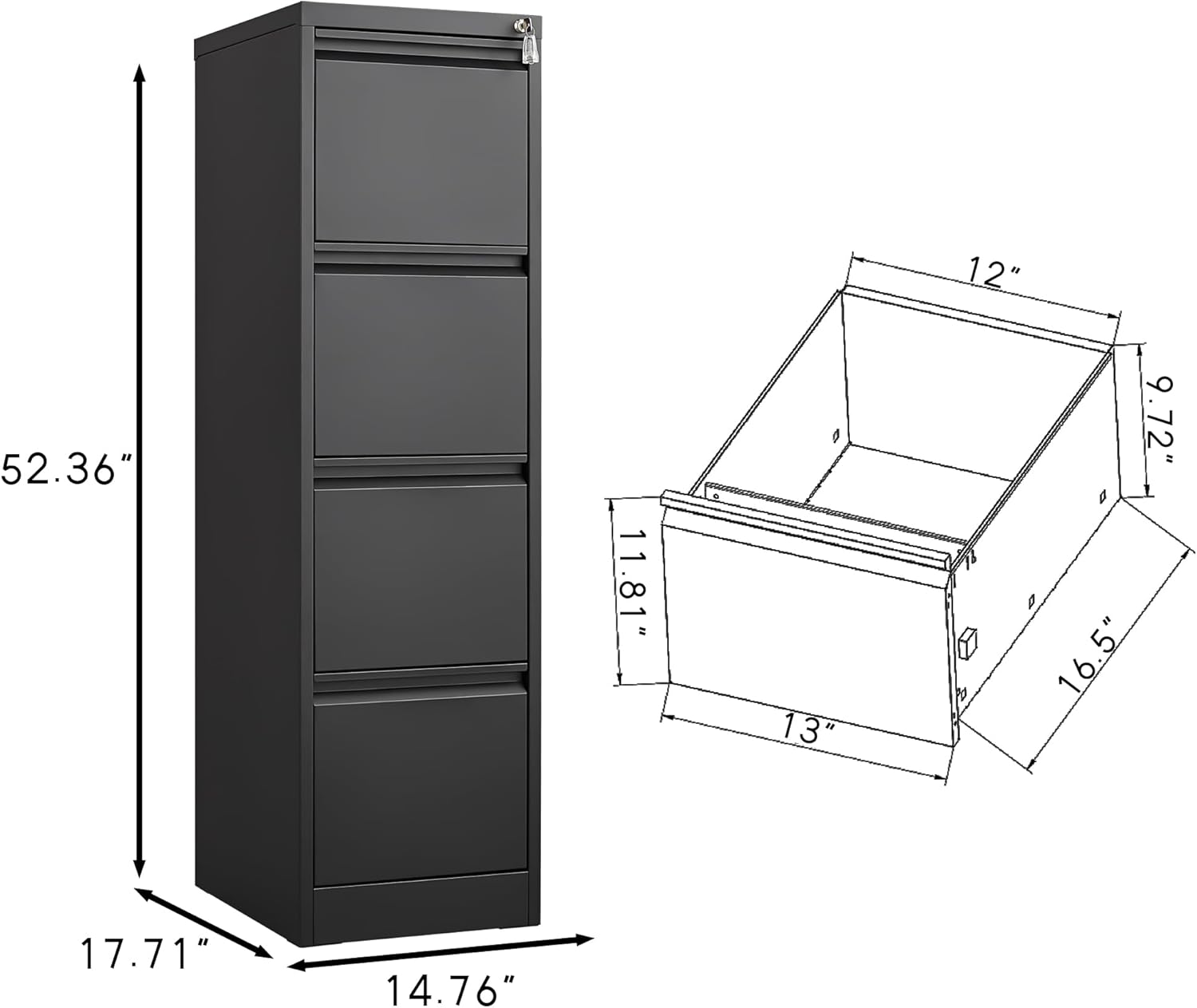 - ăWide Metal Drawersă--The vertical filing cabinet features a fully pull-out drawer design that is larger and deeper than comparable drawers, providing enough space to store all different sizes of documents, such as Letter/Legal/A4 size.