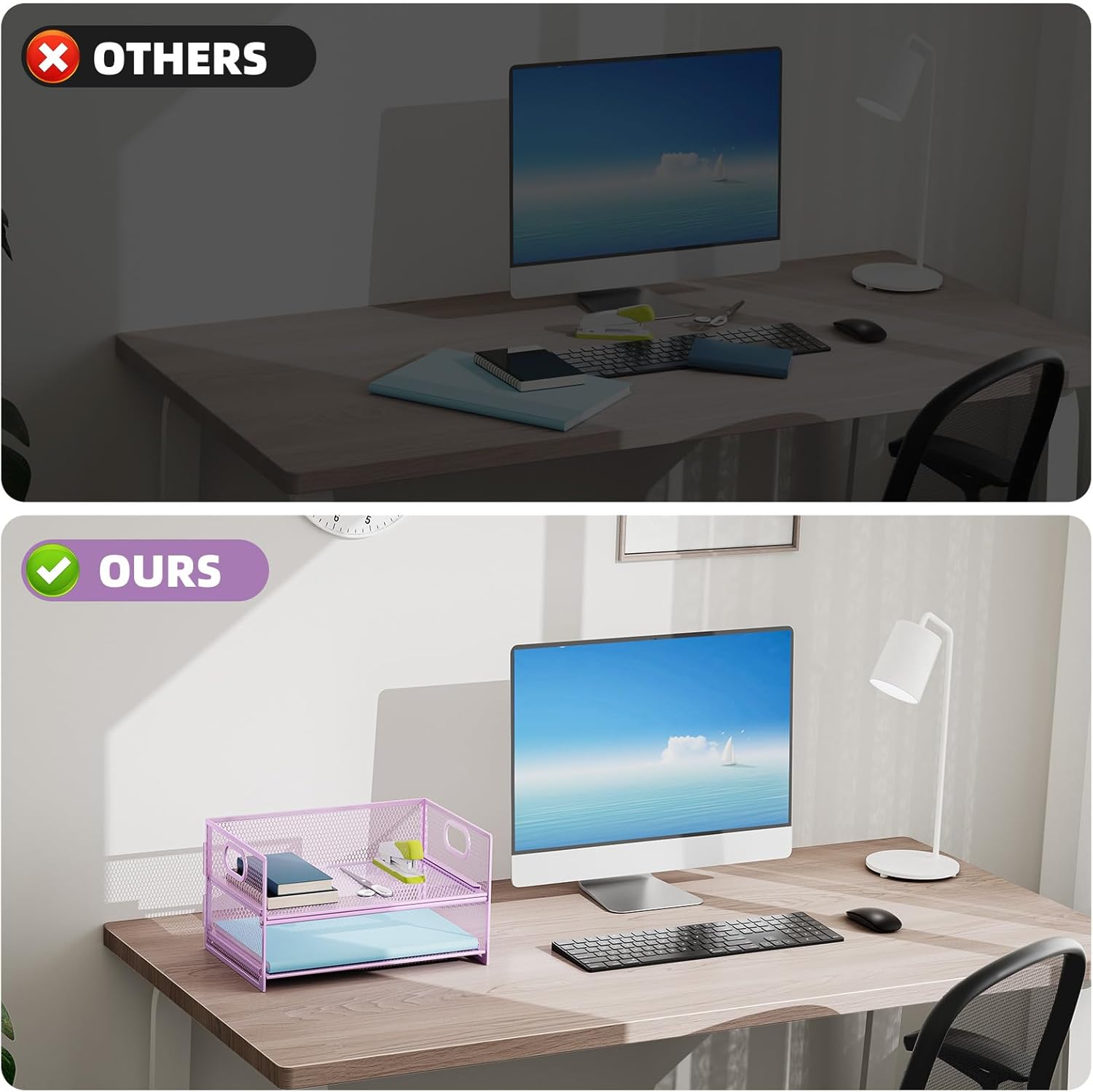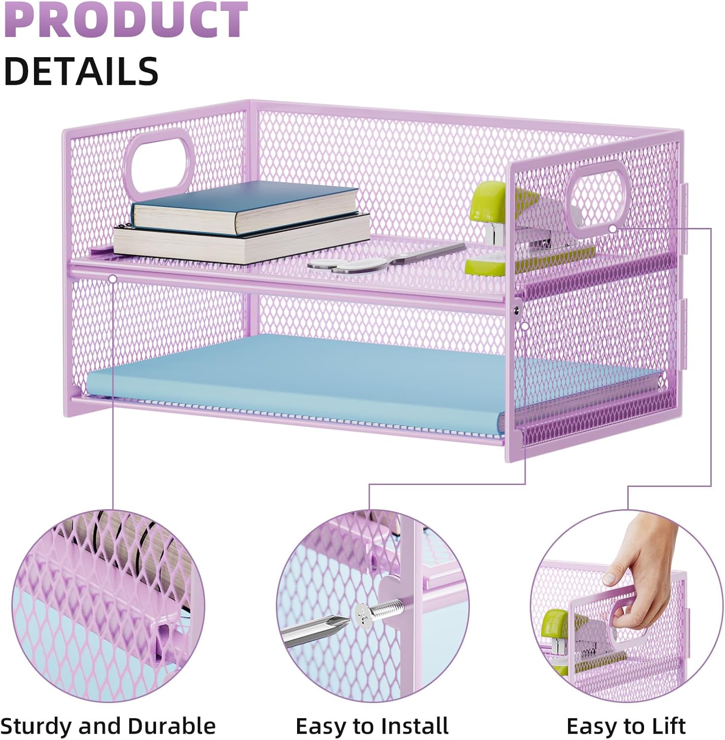 Marbrasse 2 Tier Paper Organizer Letter Tray, Mesh File Organizer with Handle, Paper Sorter Desk Organizer for Home Office Supplies - Purple