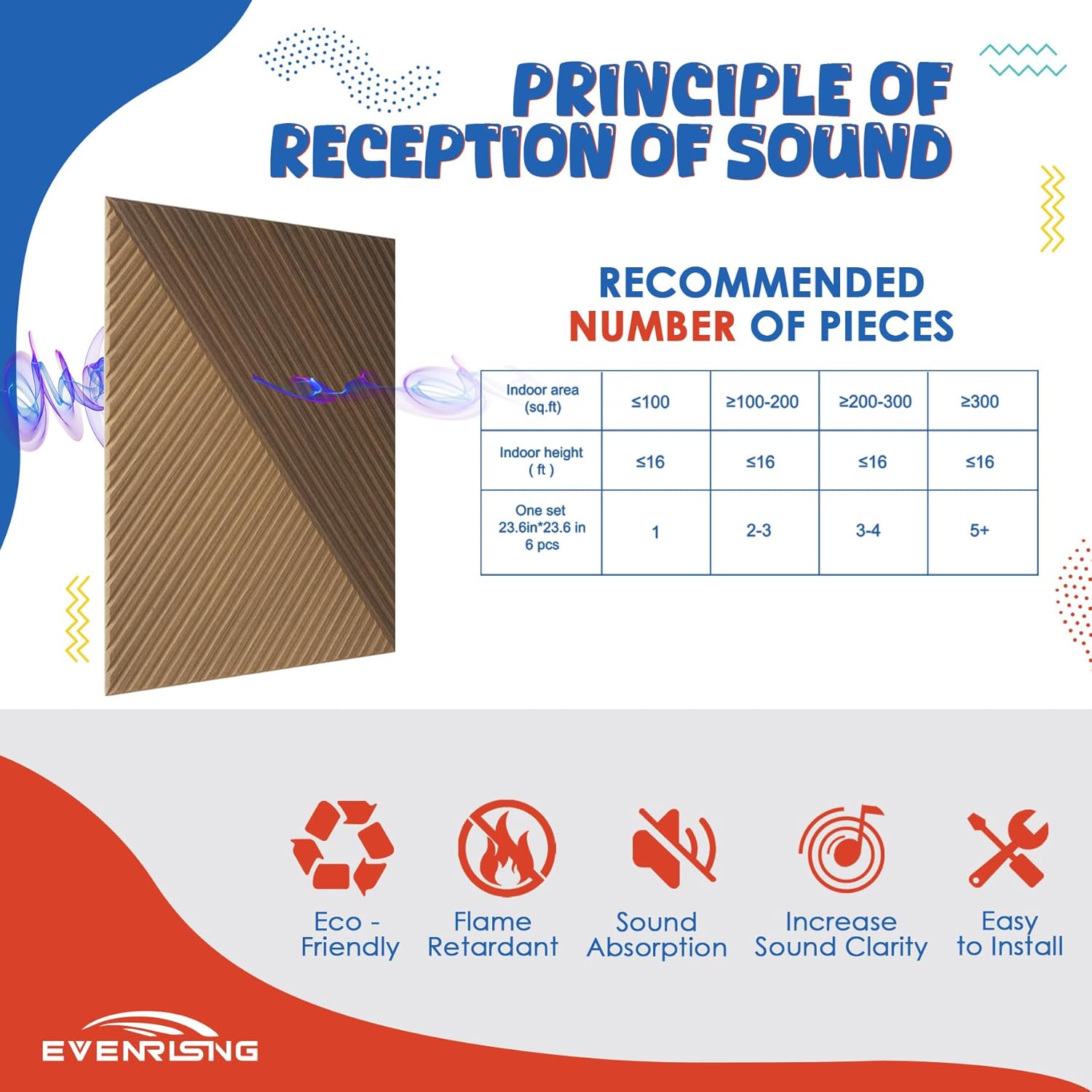 - ♻️【Upgraded Acoustic Features 】EVENRISING sound panels help reduce unwanted reflected sound in any room of your home or building, they are lightweight and are easy to mount on the wall, doors and ceiling. Help reduce background noise, echoes, reverberation time(RT), and decrease standing waves (that's what makes noisy studios or offices so bad).