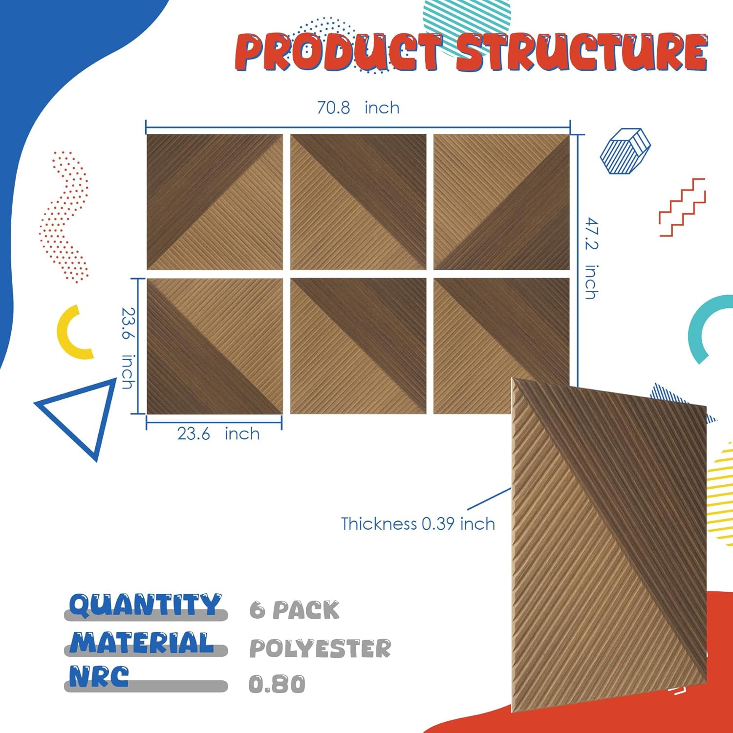 - ♻️【Upgraded Acoustic panels】Be different from other art acoustic panels,We have upgraded their acoustic performance and their appearance,Made to look like raw wood.Our acoustic wall panel uses are made with UV printing technology have vertical strips in the form of sound-absorbing panels.they absorb unnecessary sound while playing a good role in decorating the wall surface.Includes 6 pieces,The size of each one is 24 x 24 x 0.4 inches.the larger area can disperse more noise and Eliminate Echoes.