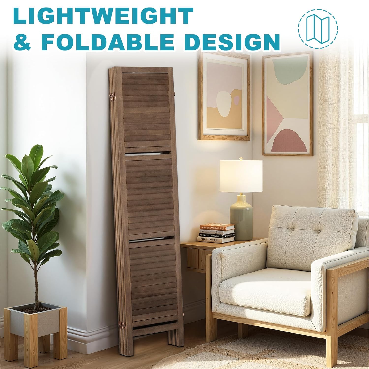 - Portable & Space-Saving: Lightweight materials and smooth hinges make this room divider screen simple to move or reposition. When not in use, the panels fold down compactly for convenient storage without taking up much space.