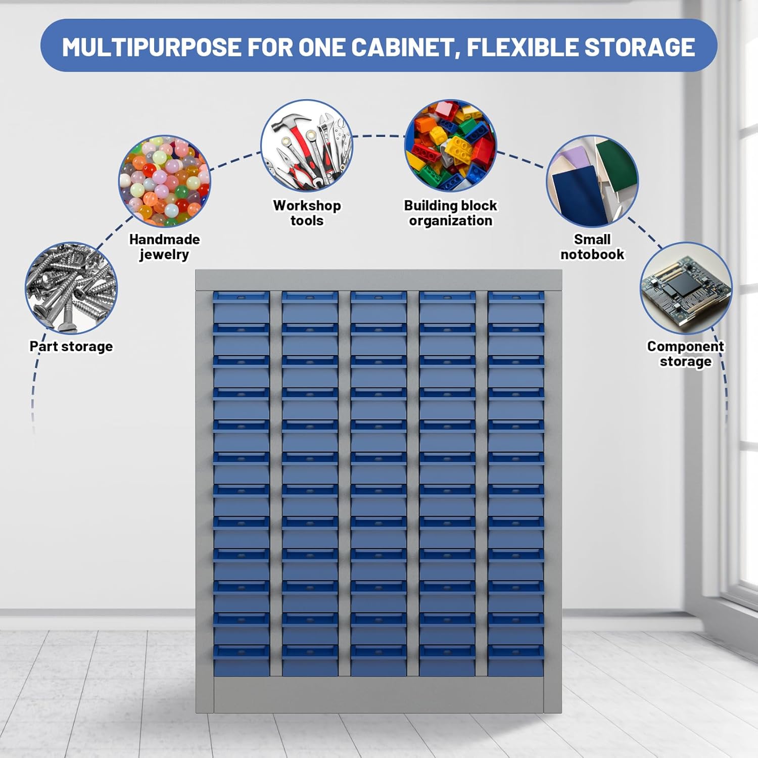 60-Drawer Parts Storage Cabinet, Multi-Purpose Organizer for Screws, Bolts, Nails, Craft Supplies, Legos, Tools, Compact Plastic Drawer Unit, Hardware Organizer for Garage, Workshop, Classroom