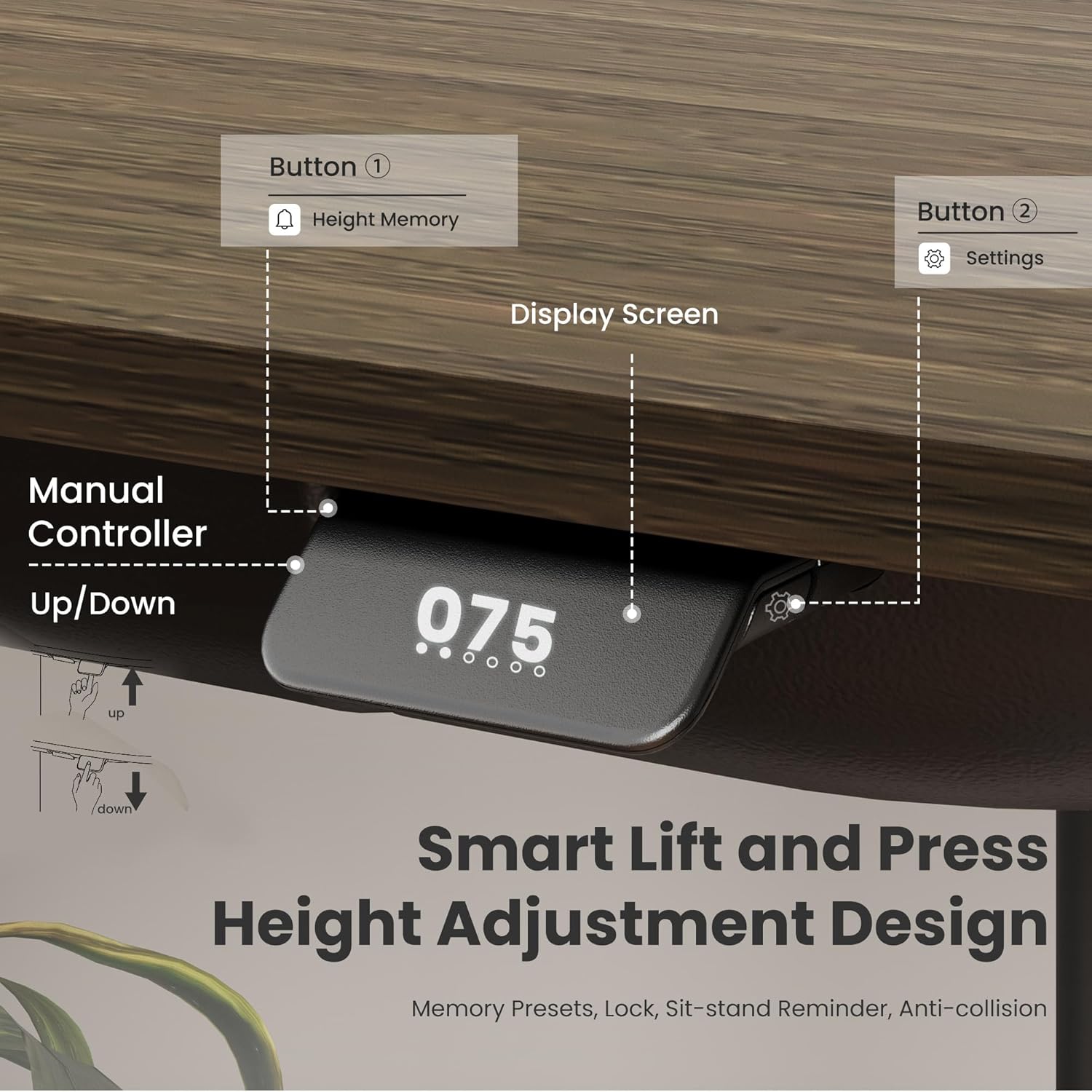 - Whisper-Quiet Dual-Motor Lift: The powerful dual-motor system operates smoothly and quietly under 50dB, lifting at 35mm/s. Adjust between 29.1"–47.6"with just a touch. Two memory presets with child lock allow quick sit-stand transitions while keeping your settings safe.