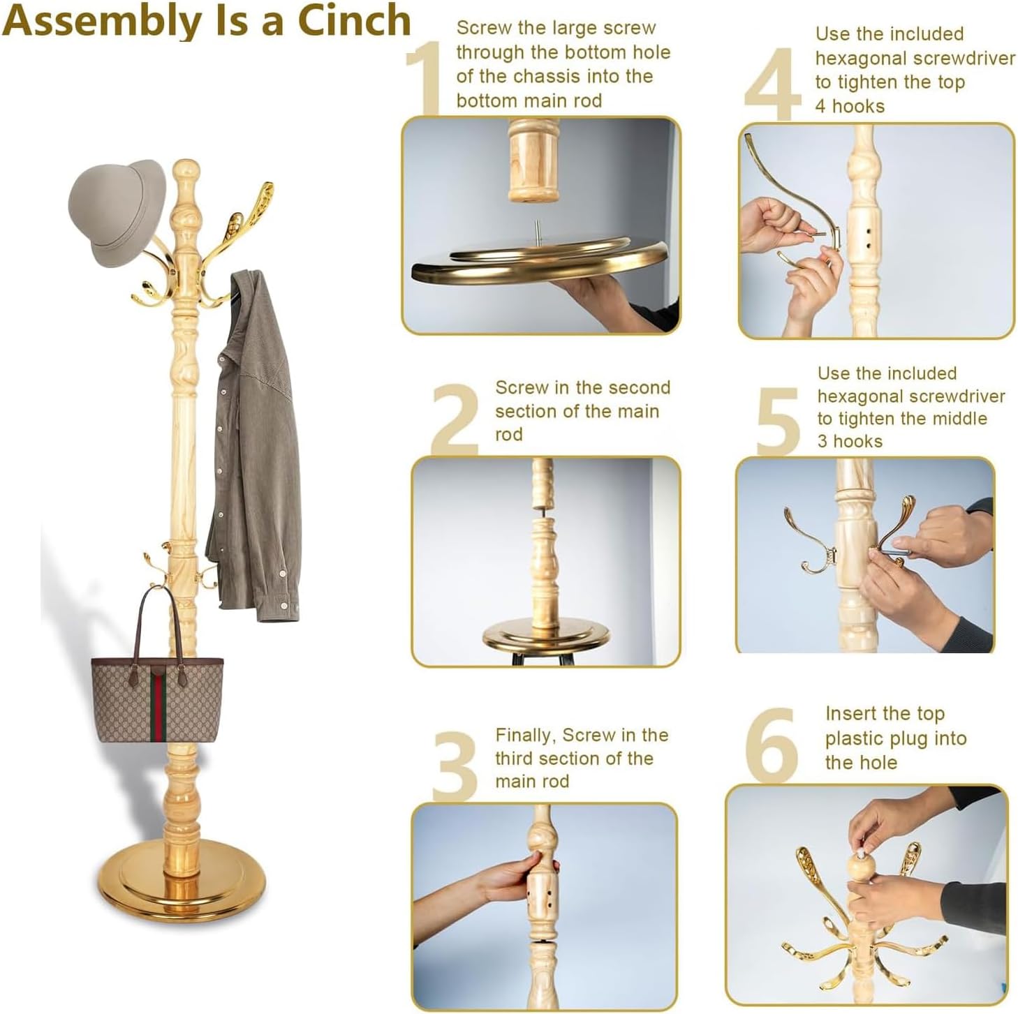 - TOOL-FREE EASY ASSEMBLY: Skip complicated tools—this vintage coat rack comes with a simple kit for minute-long assembly. The wooden coat rack pieces fit smoothly, so your coat rack freestanding is ready fast, perfect for busy days. Our team offers 24-hour support for questions, ensuring hassle-free use. This coat rack is easy to assemble and love, combining vintage style, practical storage, and convenience. For first-time renters or seasoned homeowners, this wooden coat rack delivers function and charm, a must-have for any space.