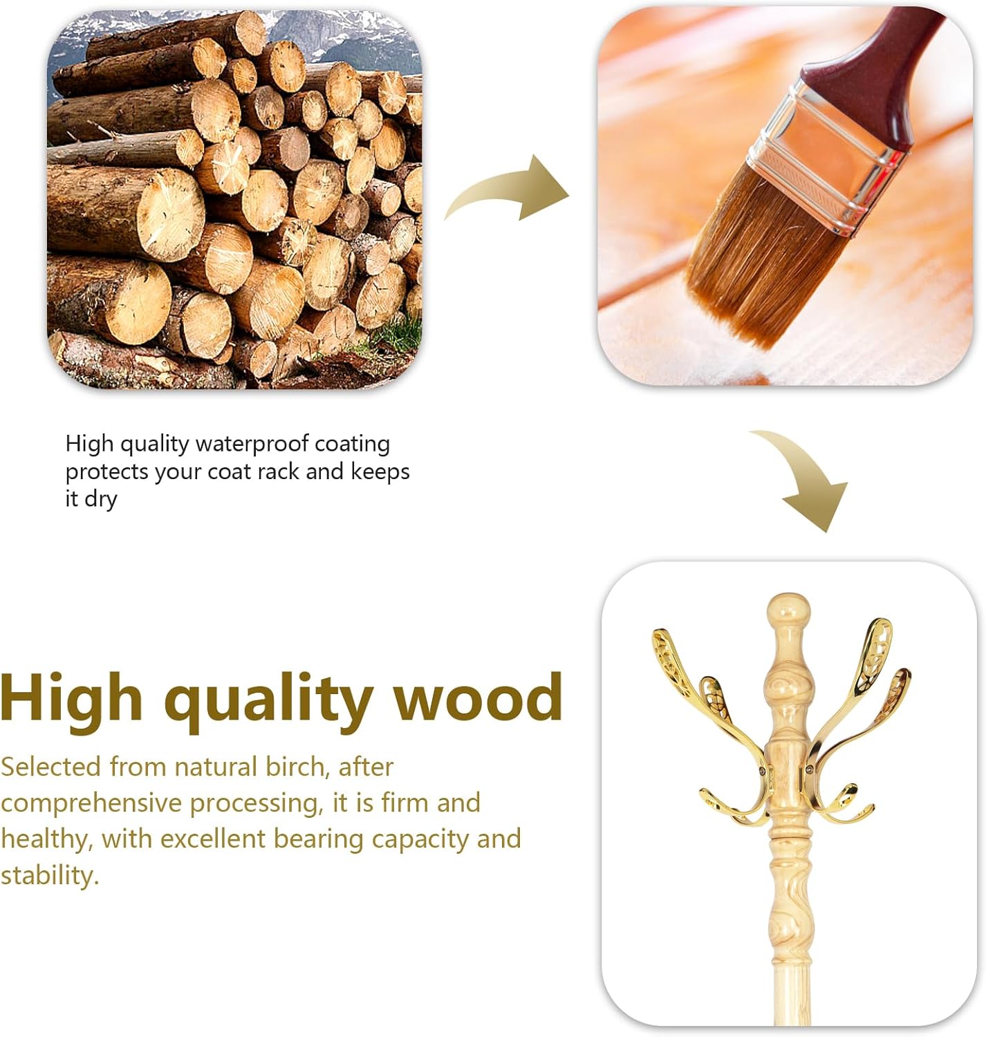 - STURDY SOLID BASE DESIGN: This coat rack freestanding stands out with a rock-solid solid wood base, staying stable even under 120 lbs. Its resin hooks have smooth rounded balls to avoid fabric snags on coats or scarves. This care makes the wooden coat rack durable yet gentle on belongings. Whether hanging heavy winter coats or lightweight totes, this coat rack stays firm—no wobbling. As a reliable wooden coat rack, it handles daily use without losing vintage charm, and this coat rack freestanding design needs no wall mounting, fitting any spot.