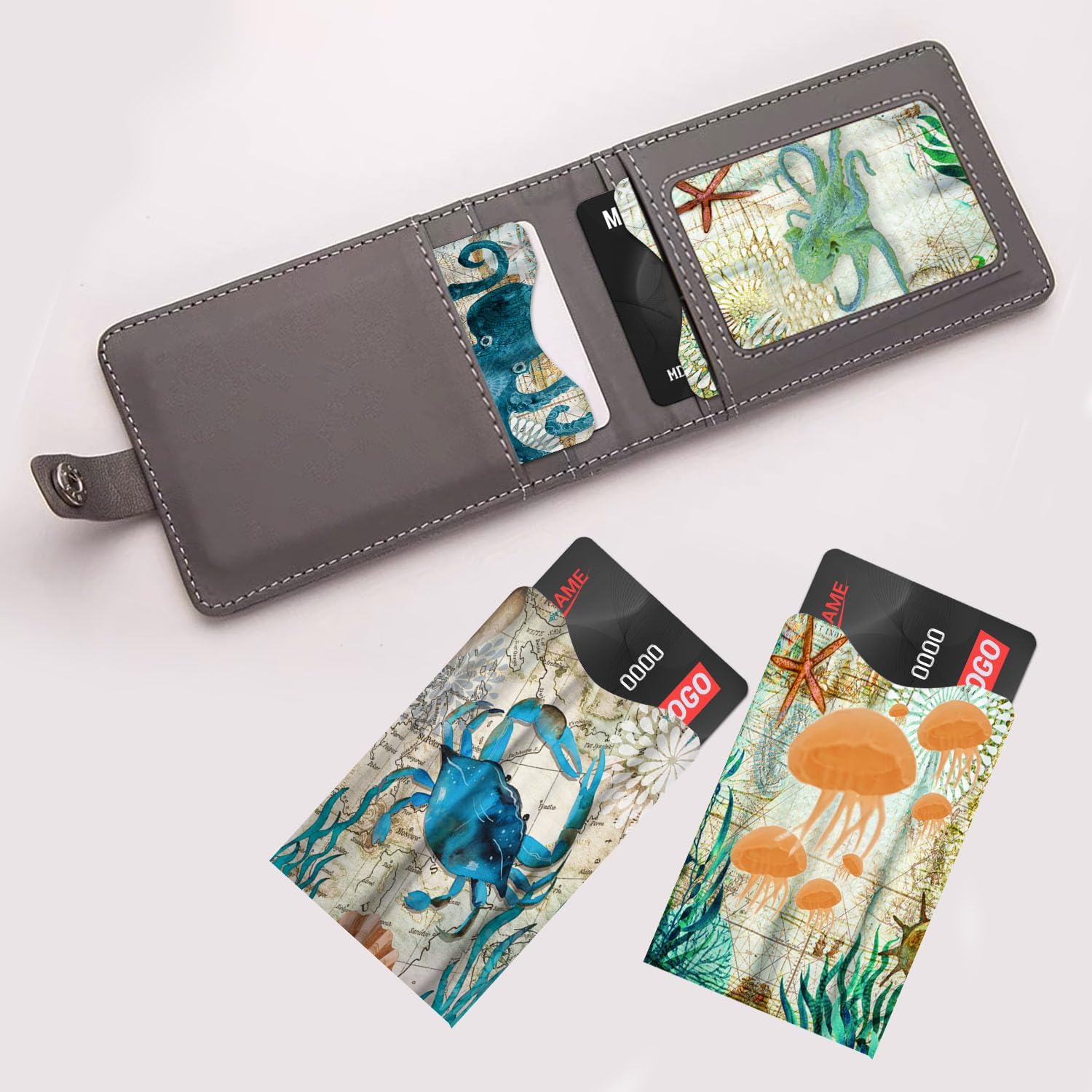 12 PCS RFID Blocking Sleeves, Credit Card Holder for Women Men Protect Cards Identity from Electronic Theft Travel Case Set (Marine Animals)