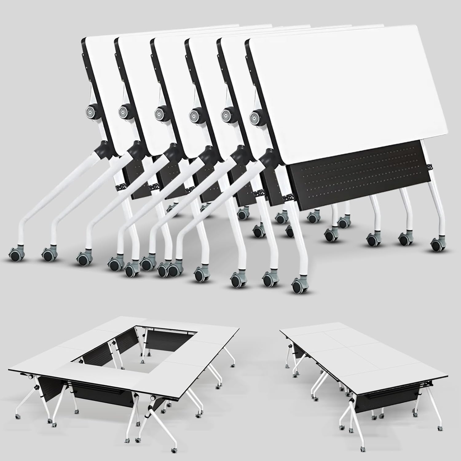 Conference Table, Folding Conference Room Tables, Mobile Training Tables with Silent Wheels, Large Rectangular Modular Seminar Table Office Computer Desks for Classroom White (6Pack L55.1in)