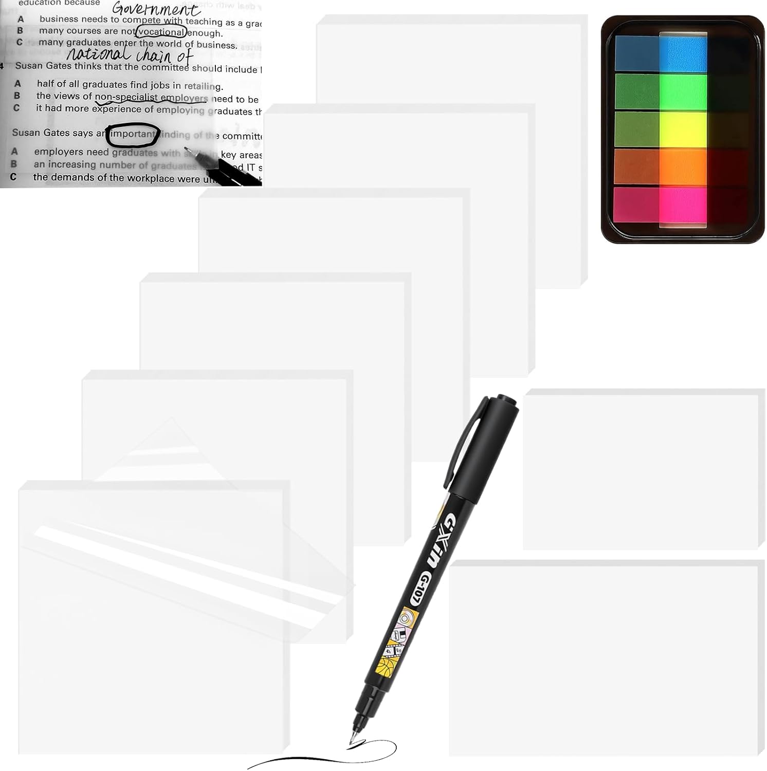 Transparent Sticky Notes (with Sticky Tabs & Marker), MEIGAONE 9 Pack Clear Sticky Note 3x3 Super Strong Adhesion, Waterproof Translucent Sticky Note for Study, Book,Office,School Supplies