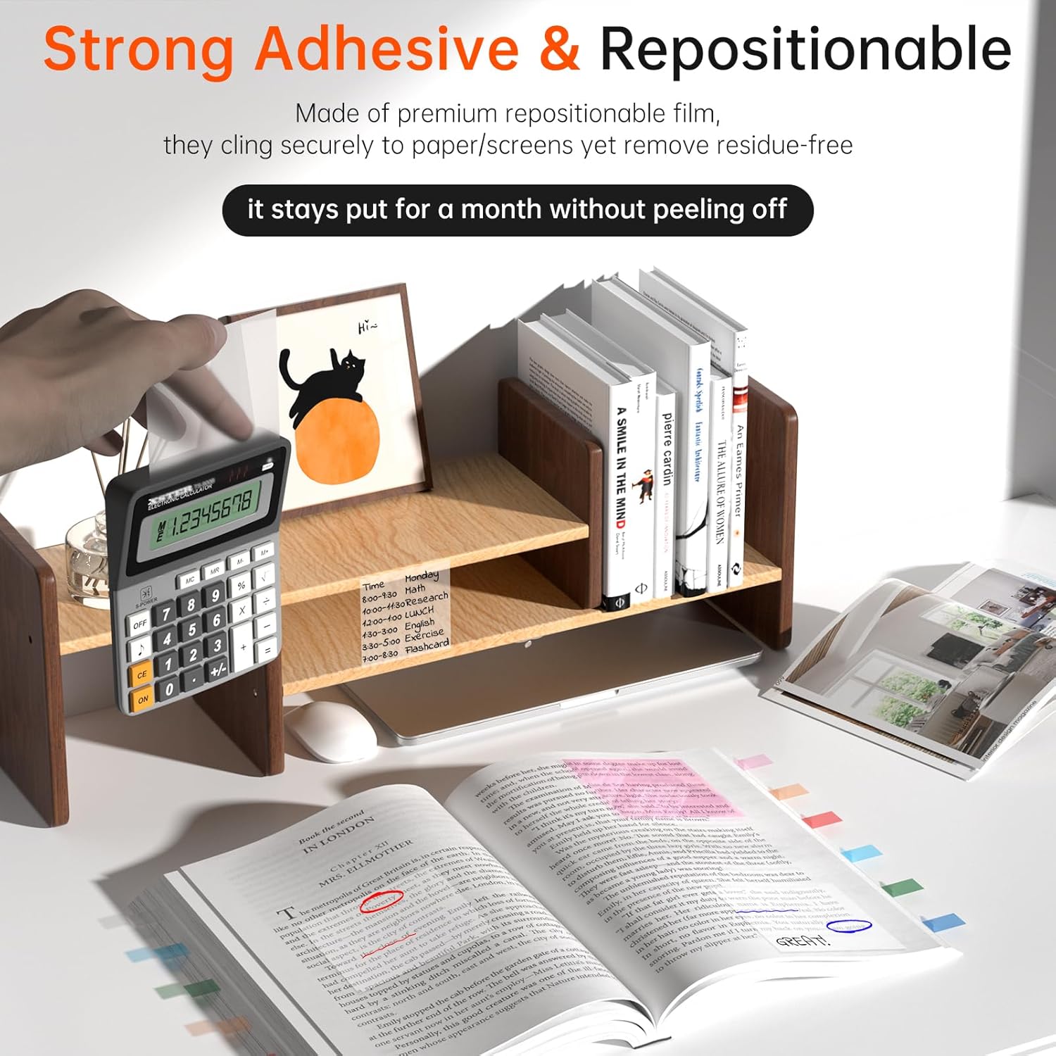 - 【Strong Stick, Clean Lift】:Our ultra-adhesive transparent notes cling firmly to any surface, yet peel off effortlessly without leaving sticky marks or ghosting. The advanced repositionable glue keeps your notes secure while protecting surfaces from damage—perfect for delicate pages and glossy screens!