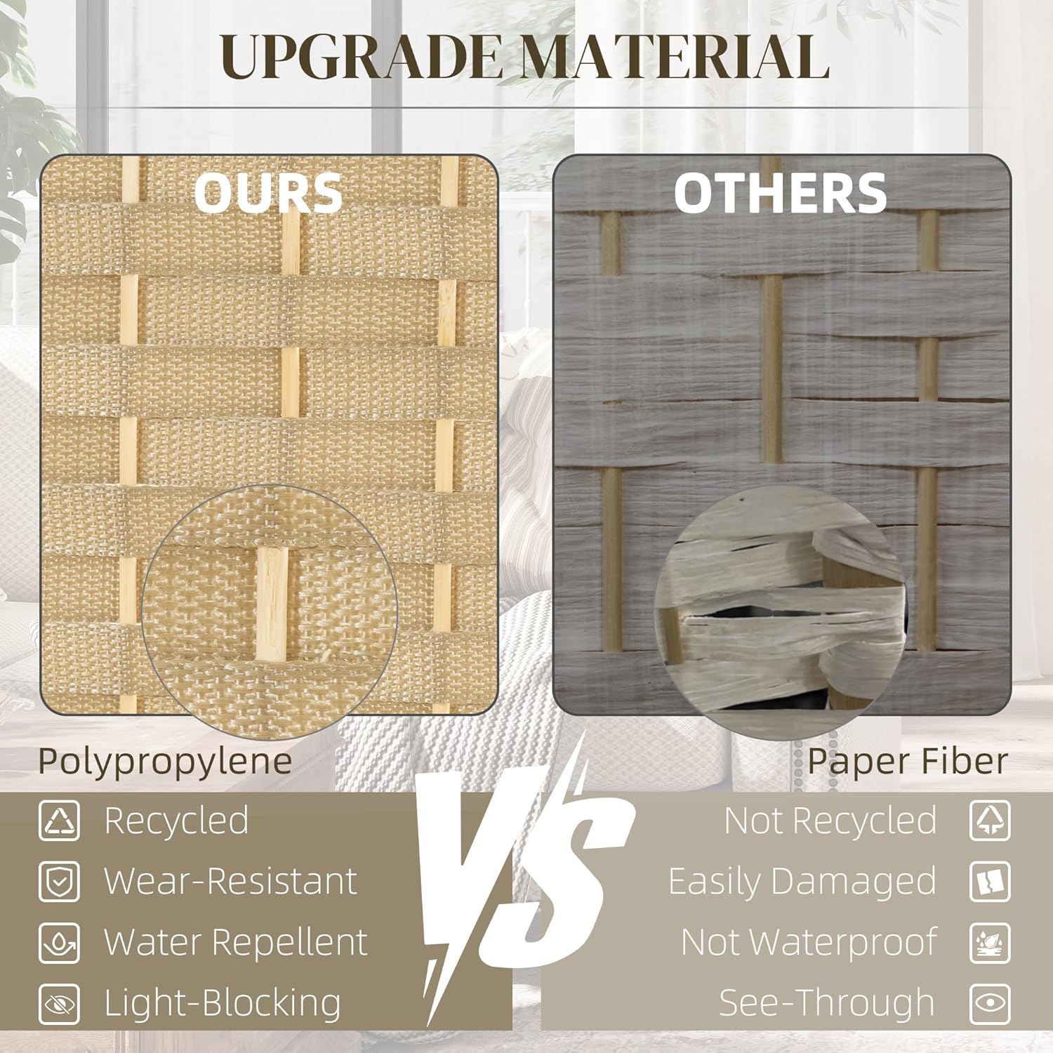 - Quality Material: Our room divider wall is made from a pine wood frame for sturdiness and polypropylene webbing for superior privacy and durability. It outperforms traditional paper fiber panels and their issues with separation and gaps