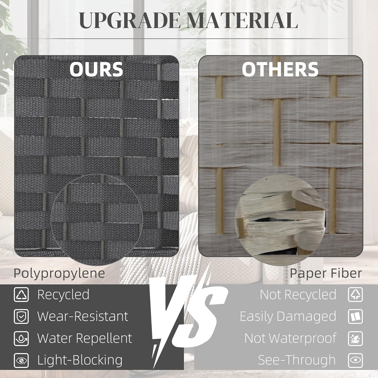 - Quality Material: Our room divider wall is made from a pine wood frame for sturdiness and polypropylene webbing for superior privacy and durability. It outperforms traditional paper fiber panels and their issues with separation and gaps
