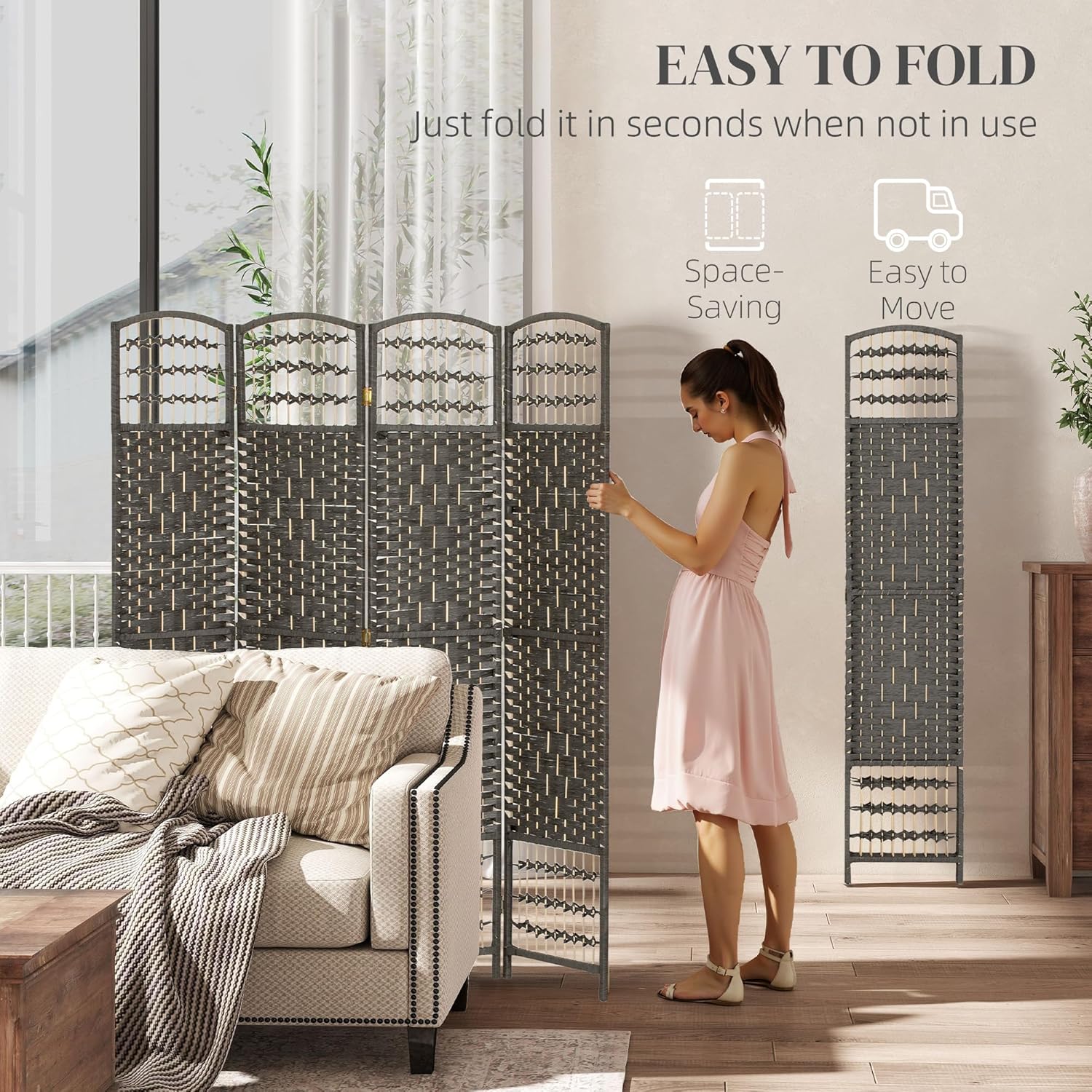 HOMCOM 4 Panel Room Divider, Folding Privacy Screen, 5.6' Room Separator, Wave Fiber Freestanding Partition Wall Divider, Dark Gray
