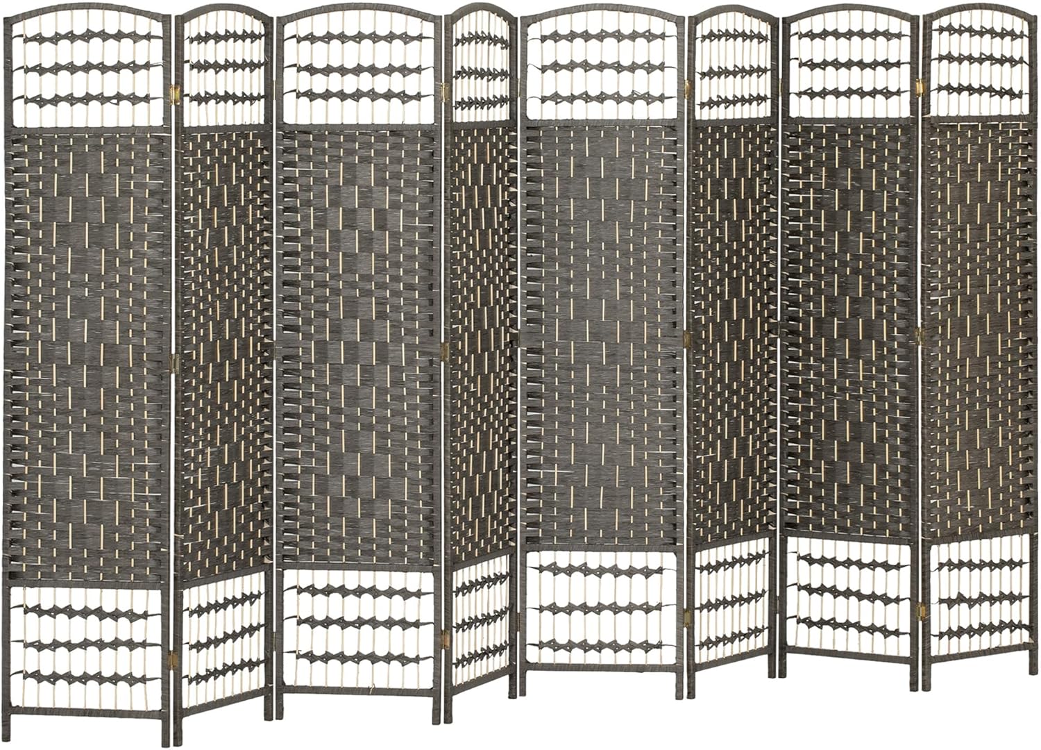 HOMCOM 8 Panel Room Divider, Folding Privacy Screen, 5.6' Room Separator, Wave Fiber Freestanding Partition Wall Divider, Dark Gray