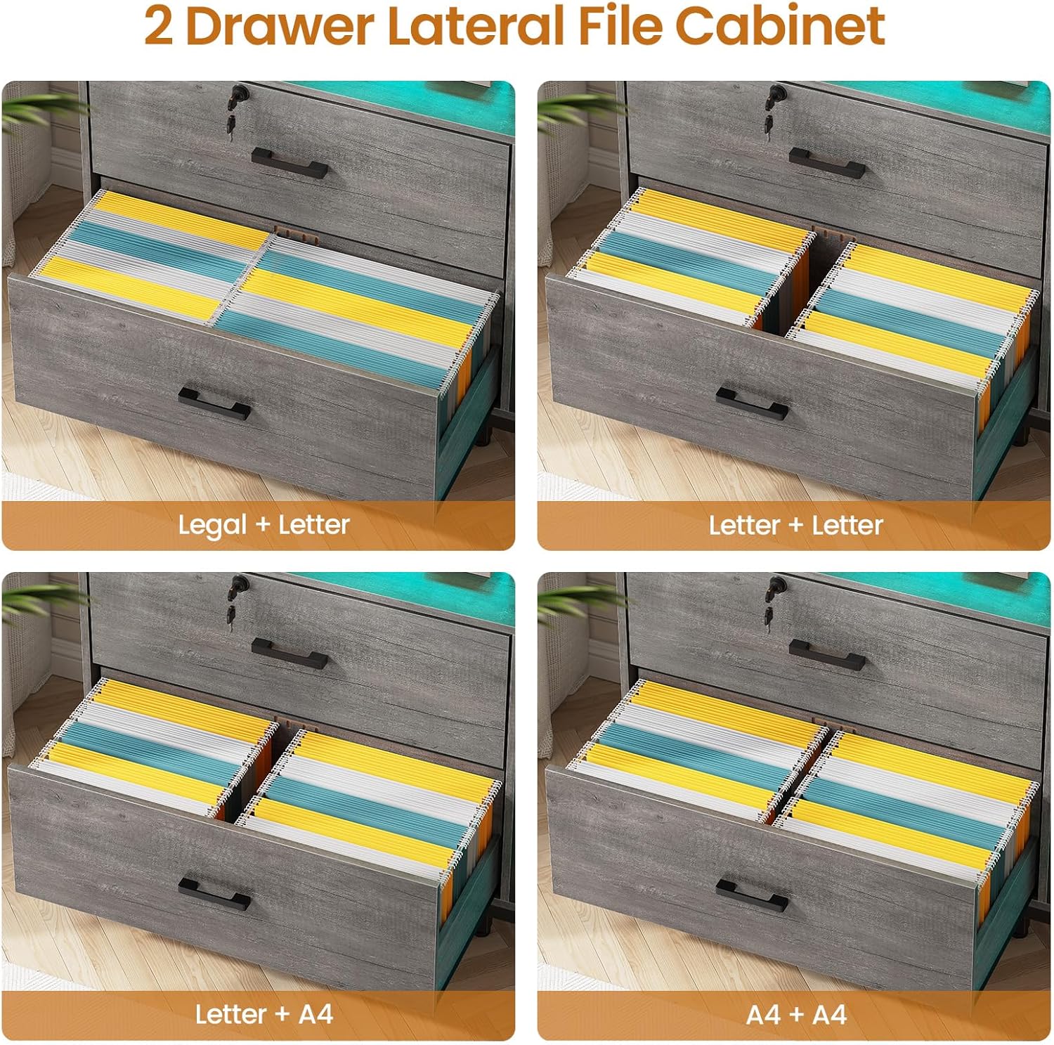 - 📁【File Compatibility & Lockable】Designed to accommodate various file sizes. Flexible hanging rods accommodates multiple sizes file: Legal + Letter Size/ Letter+ A4 Size/ Letter + Letter Size/ A4+A4 Size. No more hassle of finding the file cabinet for different file types. The lockable top drawer provides added privacy and security for your personal items.