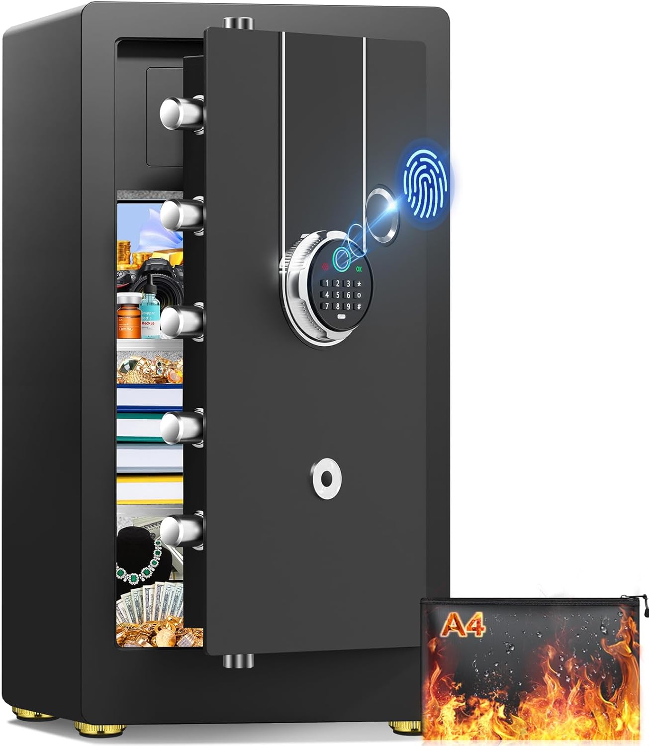 9.0 Cuft Heavy Duty Biometric Fireproof Safe Box with Fireproof Waterproof Bag, Large Document Storage with Bottom Hidden Compartment, Anti-Theft Dual Alerts, Mute Mode, Digital Security for Business