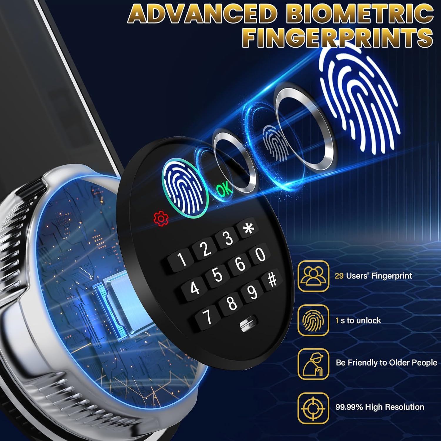 - 【4 Ways to Open - Perfect for Families Safe】Unlocks faster than your smartphone! 0.1-second fingerprint access stores 29 fingerprints. Wrong code? Auto-alarm activates. Lost keys? Use any phone charger with the Type-C port to open!